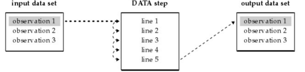 首先了解数据步的运行方式:数据步按照一行一行、一个观测值一个观测值的顺序执行