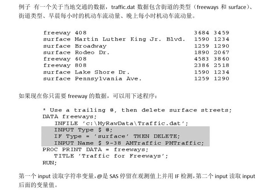 在INFILE函数的基础上,针对不同格式的外部数据以及读取所有数据还是部分数据INPUT语句中有不同的处理方法,以下分别说明: