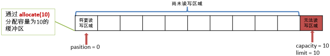 | 位置 (position) | 下一个要读取或写入的数据的索引。缓冲区的位置不能为 负,并且不能大于其限制 |