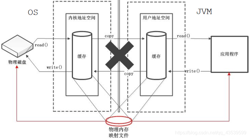 @Test public void test1(){ //10874-10953 FileInputStream fis = null; FileOutputStream fos = null; //1. 定义通道引用 FileChannel inChannel = null, outChannel = null; try{ fis = new FileInputStream("d:/1.mkv"); fos = new FileOutputStream("d:/2.mkv"); inChannel = fis.getChannel(); outChannel = fos.getChannel(); //2. 分配指定大小的缓冲区 ByteBuffer buf = ByteBuffer.allocate(1024); //3. 将通道中的数据存入缓冲区中 while(inChannel.read(buf) != -1){ //buffer的初始状态是写入模式. buf.flip(); //切换读取数据的模式 outChannel.write(buf); //4. 将缓冲区中的数据写入通道中 buf.clear(); //清空缓冲区 } }catch(){} finally {} } 二、使用直接缓冲区完成文件的复制 (内存映射文件)