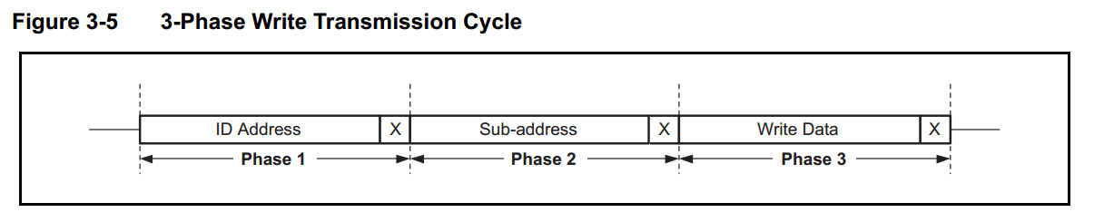 先发送起始信号,而后 SIO_D 的数据在SIO_C处于低电平时改变,在SIO_C处于高电平时被传输,如此发送一相数据后,紧跟着发送结束信号,完成一相数据的传输。