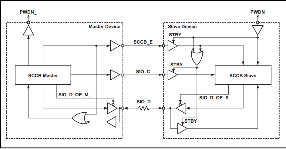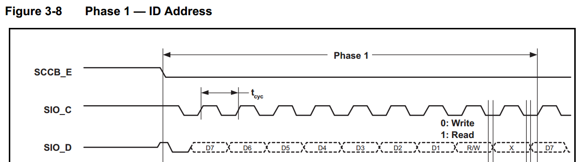 在不进行传输时 SCCB_E 与 SIO_C 处于高电平,SIO_D 处于高阻态