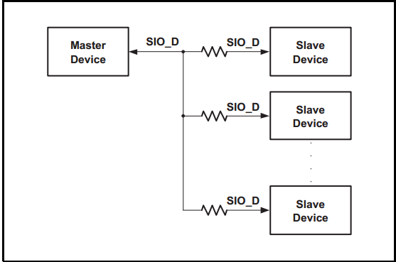 此时应该与IIC一样,各从机并联,并保持SIO_D的电阻,该电阻保证了总线争用时不会发生短路。