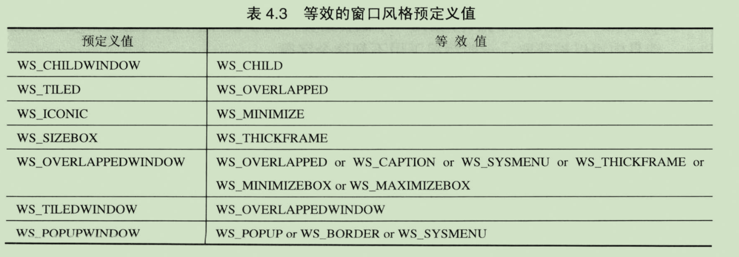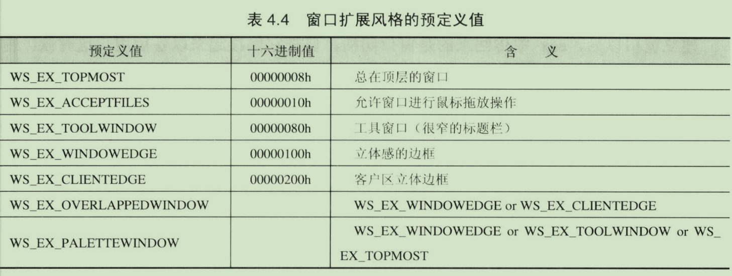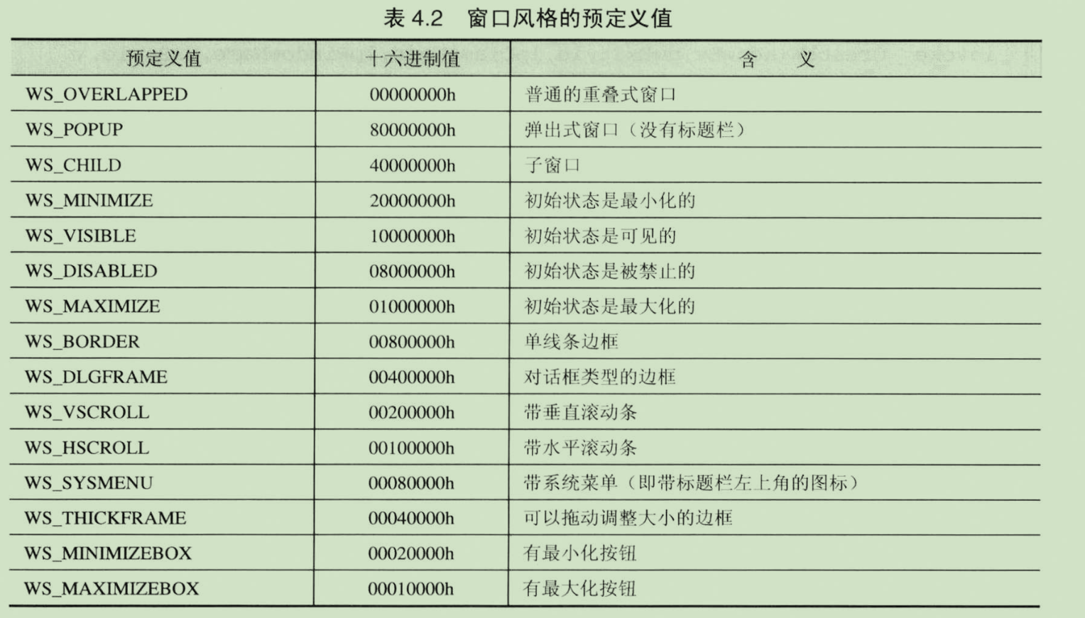 style――窗口风格。CS_HREDRAW和CS_VREDRAW表示窗口的宽度或高度改变时是否重画窗口。比较重要的是CS_DBLCLKS风格,指定了它,Windows才会把在窗口中快速两次单击鼠标的行为翻译成双击消息WM_LBUTTONDBLCLK发给窗口过程。