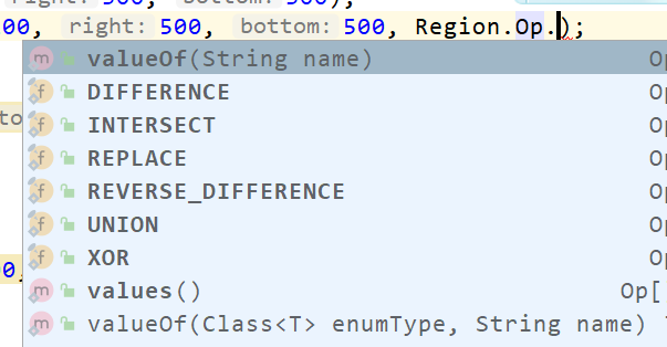 canvas.clipRect(0, 0, 300, 300, Region.Op.DIFFERENCE); canvas.clipRect(200, 200, 500, 500); RectF rectF = new RectF(0, 0, 300, 300); canvas.drawRect(rectF, mPaint); mPaint.setColor(Color.GREEN); RectF rectF2 = new RectF(200, 200, 500, 500); canvas.drawRect(rectF2, mPaint);