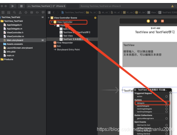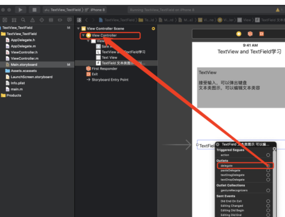 上面掩饰了通过非代码的方式让UITextView 和 UITextViewDelegate相关联,然后UITextViewDelegate中的某一个回调函数被调用了,下面将通过代码的方式将让UITextView 和 UITextViewDelegate相关联,