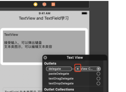 2)在代码中添加UITextView 和 UITextViewDelegate的关联关系
