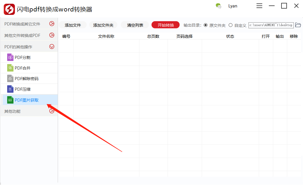 第一步、双击打开软件后,在界面左侧功能区选择“PDF图片获取”。