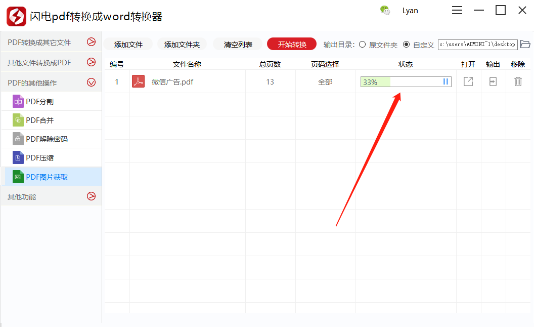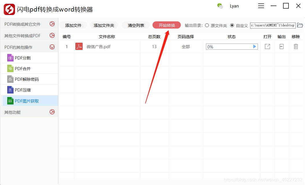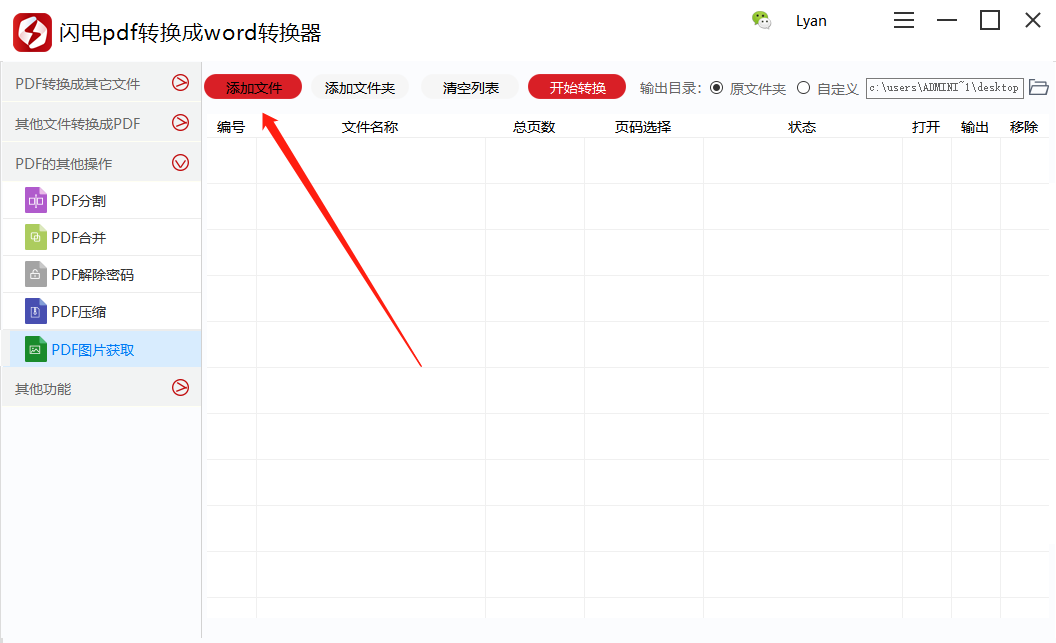 第二步、然后点击“添加文件”将需要获取图片的PDF添加进来。