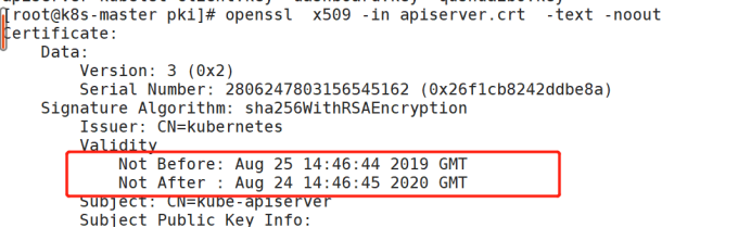 openssl x509 -in apiserver.crt -text -noout | grep Not