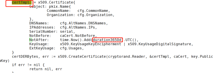 NotAfter: time.Now().Add(duration365d).UTC(), #这一行在下面修改add的值就行