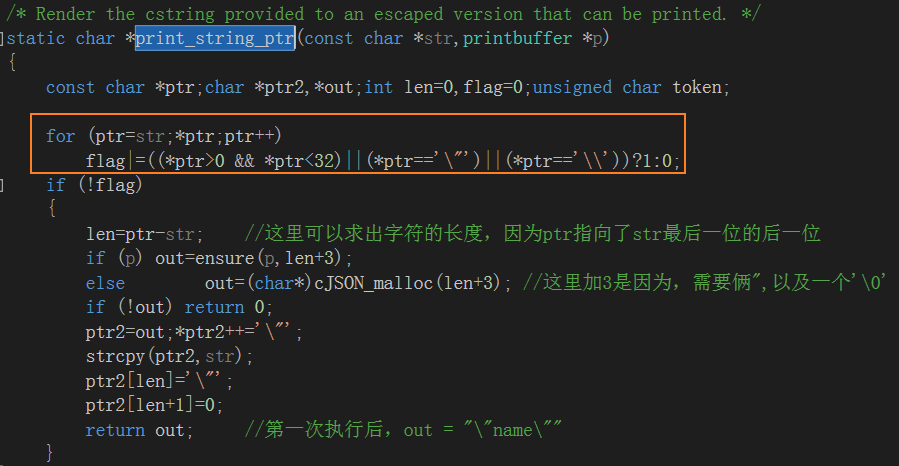 在分析print_object()函数时,对于出现的print_String_ptr()函数,我们做进一步的分析。下面就是print_String_ptr()函数,我已经贴好了注释,针对给定的text文件,就返回"\"name\""了。