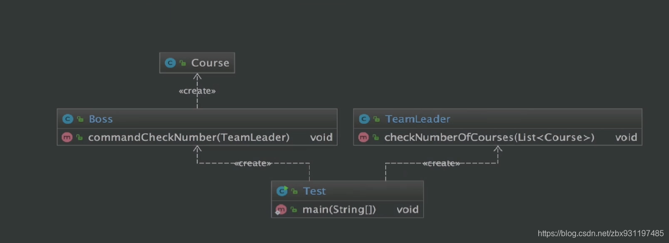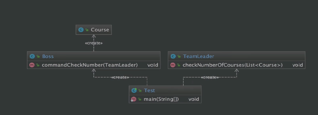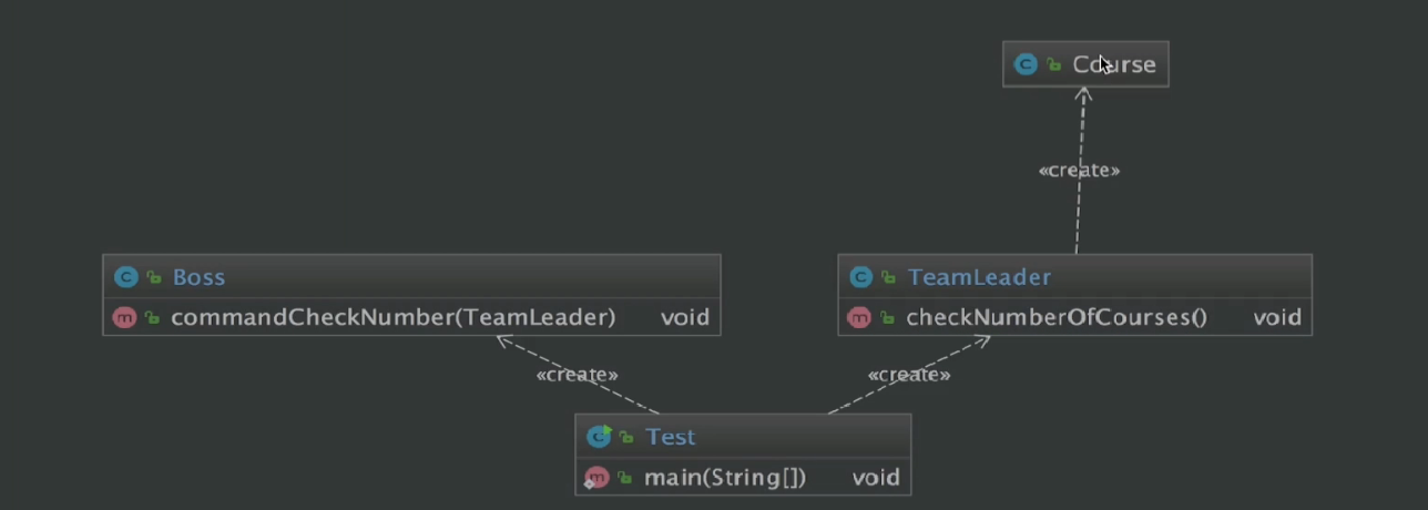 - 一般是一个类使用另一个类作为参数使用,或作为返回值