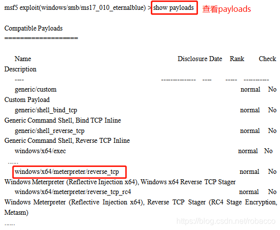3、Payload:攻击载荷,指使用Exploit成功攻击目标系统之后,真正在目标系统执行的代码或指令,通常是.rb文件,使用Ruby语言编写。payload的目的是在对目标主机攻击成功后给攻击者返回一个控制通道。