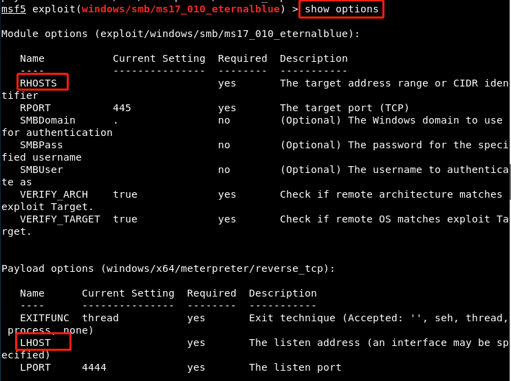 探究:给exploit攻击之前设置payload参数选项(如:windows/meterpreter/reverse_tcp)