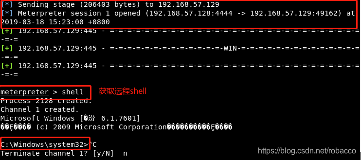观察攻击载荷返回的shell如何变化?变成了meterpreter shell 而不是command shell