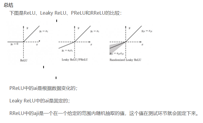ReLU(线性整流函数)、Leaky ReLU(带泄露线性整流函数)、PReLU(参数化修正线性单元)和RReLU(随机纠正线性单元)的比较: