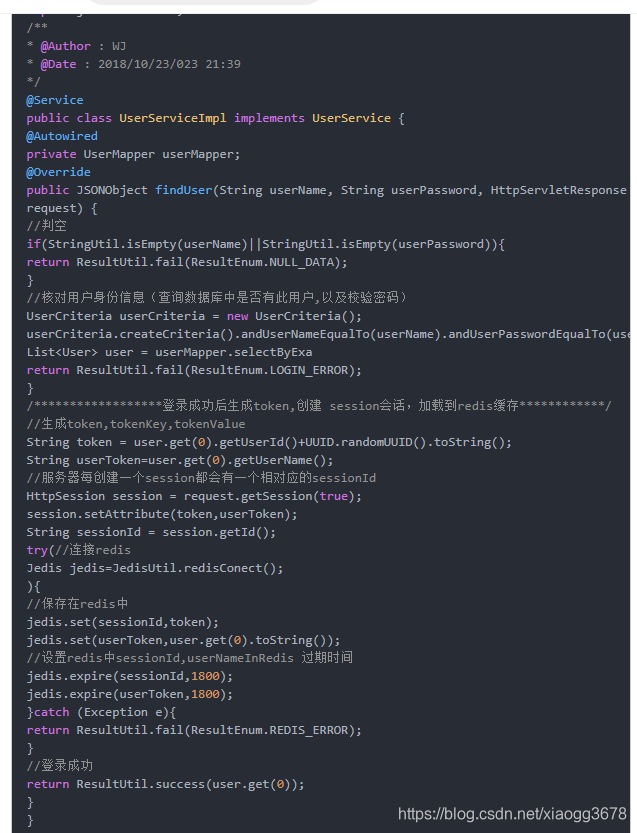③service层进行业务逻辑处理(创建会话,写入sessionId与用户数据到redis,设置过期时间,cookie默认关闭浏览器过期)