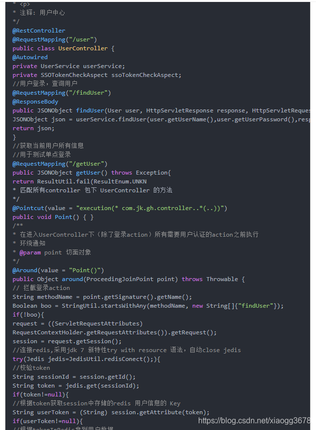 <!--Jedis客户端--> <dependency> <groupId>org.springframework.data</groupId> <artifactId>spring-data-redis</artifactId> <version>1.6.2.RELEASE</version> </dependency> <dependency> <groupId>redis.clients</groupId> <artifactId>jedis</artifactId> <version>2.9.0</version> </dependency> spring-mvc.xml需配置开启aop注解: <!--开启基于注解的aop功能 --> <aop:aspectj-autoproxy></aop:aspectj-autoproxy> 三、单点登录认证过程以及原理