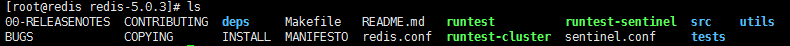 tar zxf redis-5.0.3.tar.gz 2.4 进入redis目录后,ls打开目录下文件,如下所示: