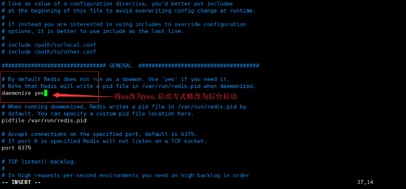 第二步:修改redis.conf文件,将daemonize no -> daemonize yes,这样便将启动方式修改为后台启动了