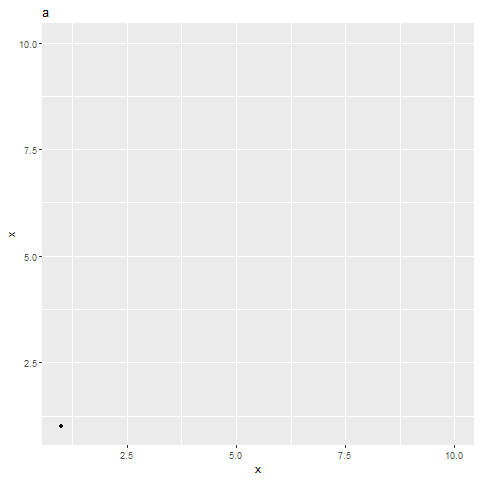 ggplot(df, aes(x, x)) + geom_point() + labs(title = '{closest_state}') + transition_states(x, transition_length = 0.1, state_length = 0.1) This fails: