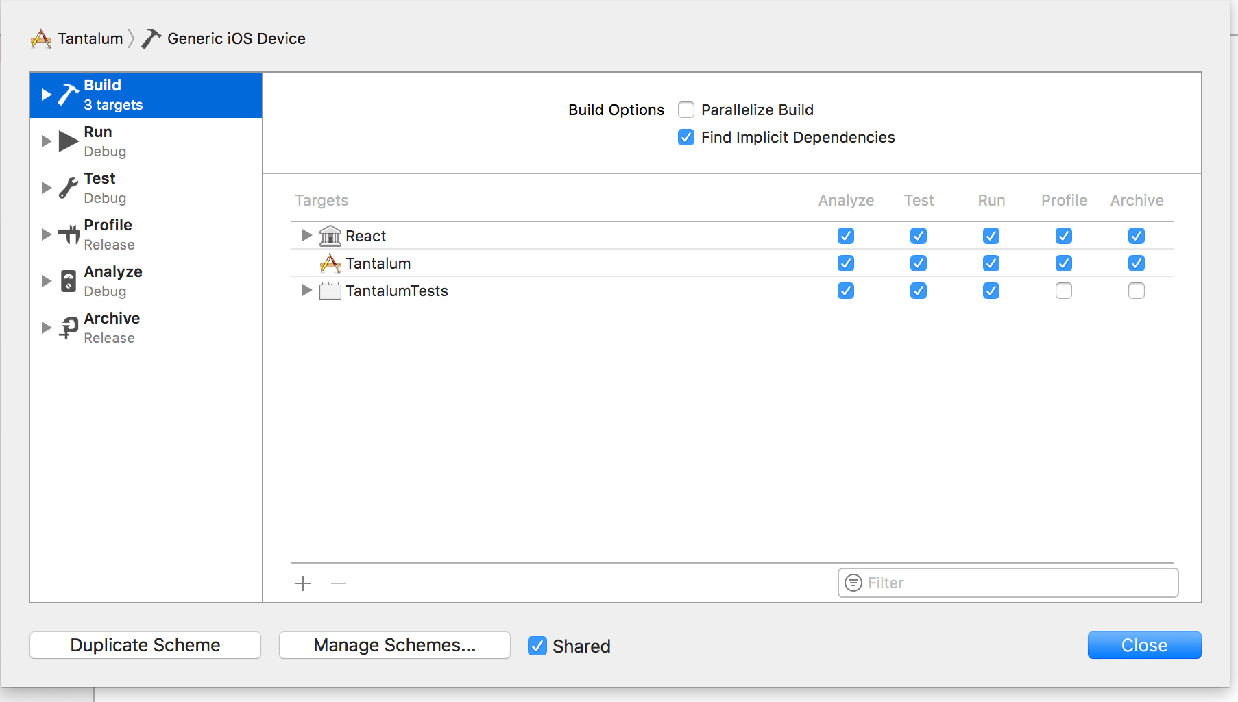 Do you have Parallelize build option unchecked and React listed first in your build targets?