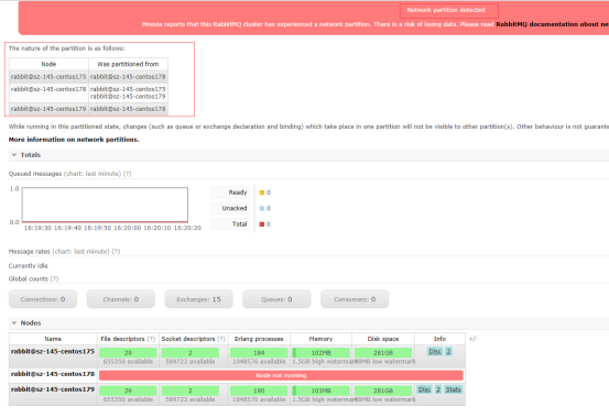 重启节点rabbit@sz-145-centos178后集群状态恢复正常。