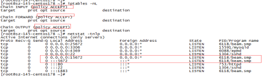 6、关闭iptables策略,可以看到该节点RabbitMQ服务自动启动,集群状态也正常;