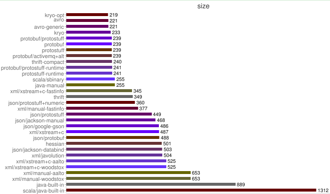 图2-26 各序列化框架序列化码流大小对比