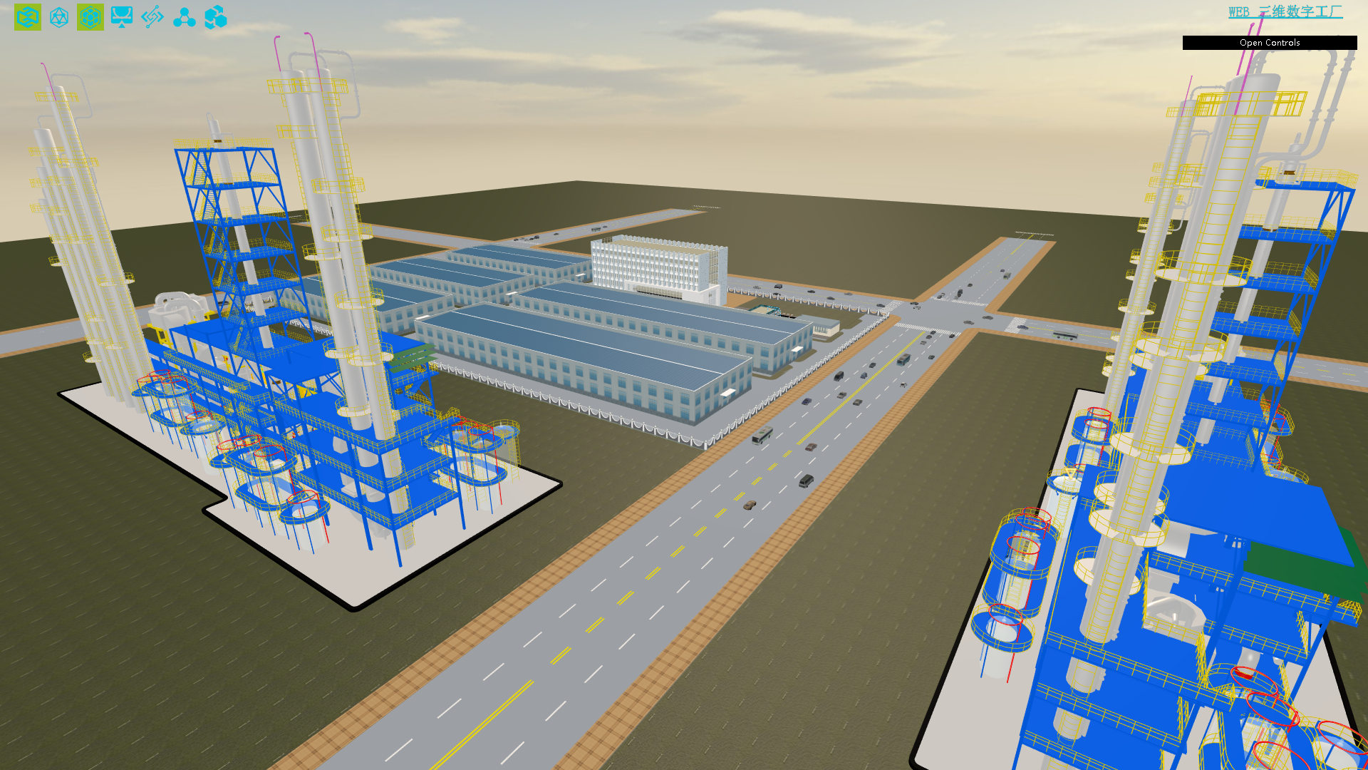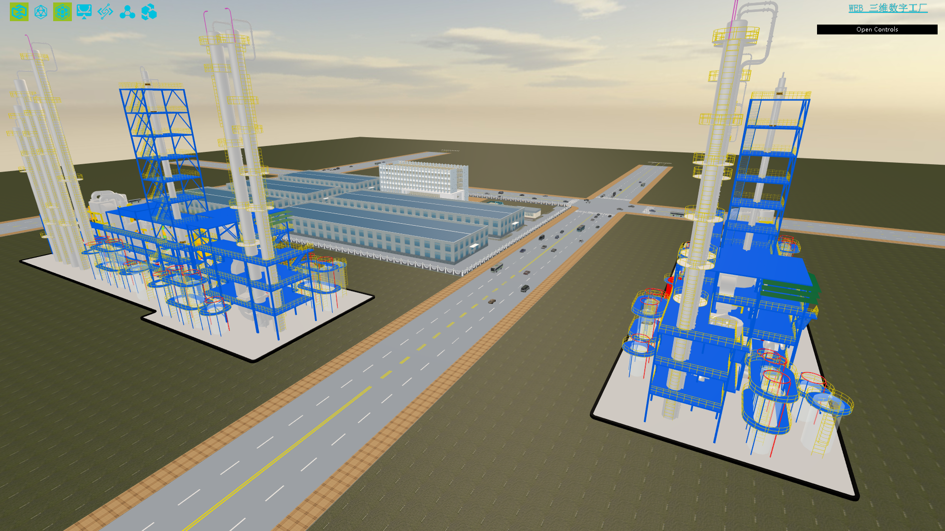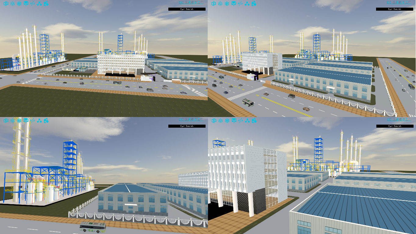 对工厂园区的园区、大楼、生产车间、生产设备、监控设备等进行3D建模,实现物理工厂园区到3D虚拟工厂园区的数字化、可视化的转化。使工厂生产更为流畅,减少不必要的错误和开支,节约成本。避免失误导致意外产生,并能提高操作者的熟练度,使工作效率大幅度提高。