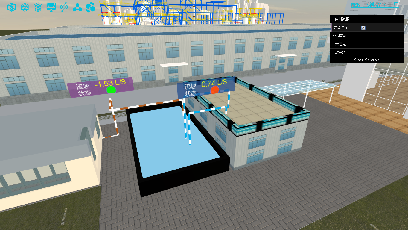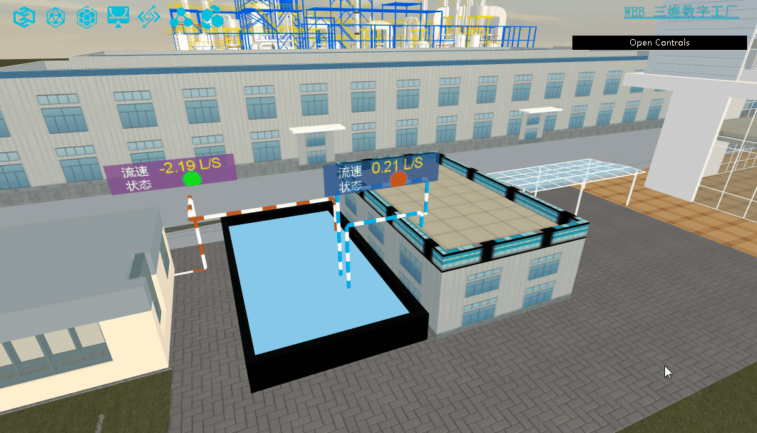 可对工厂、园区的管道(输气管道、输水管道、输油管道等)流向进行实时监控,根据流向、流速对管道进行三维模拟,从而达到可视化监测监控及模拟演练效果。