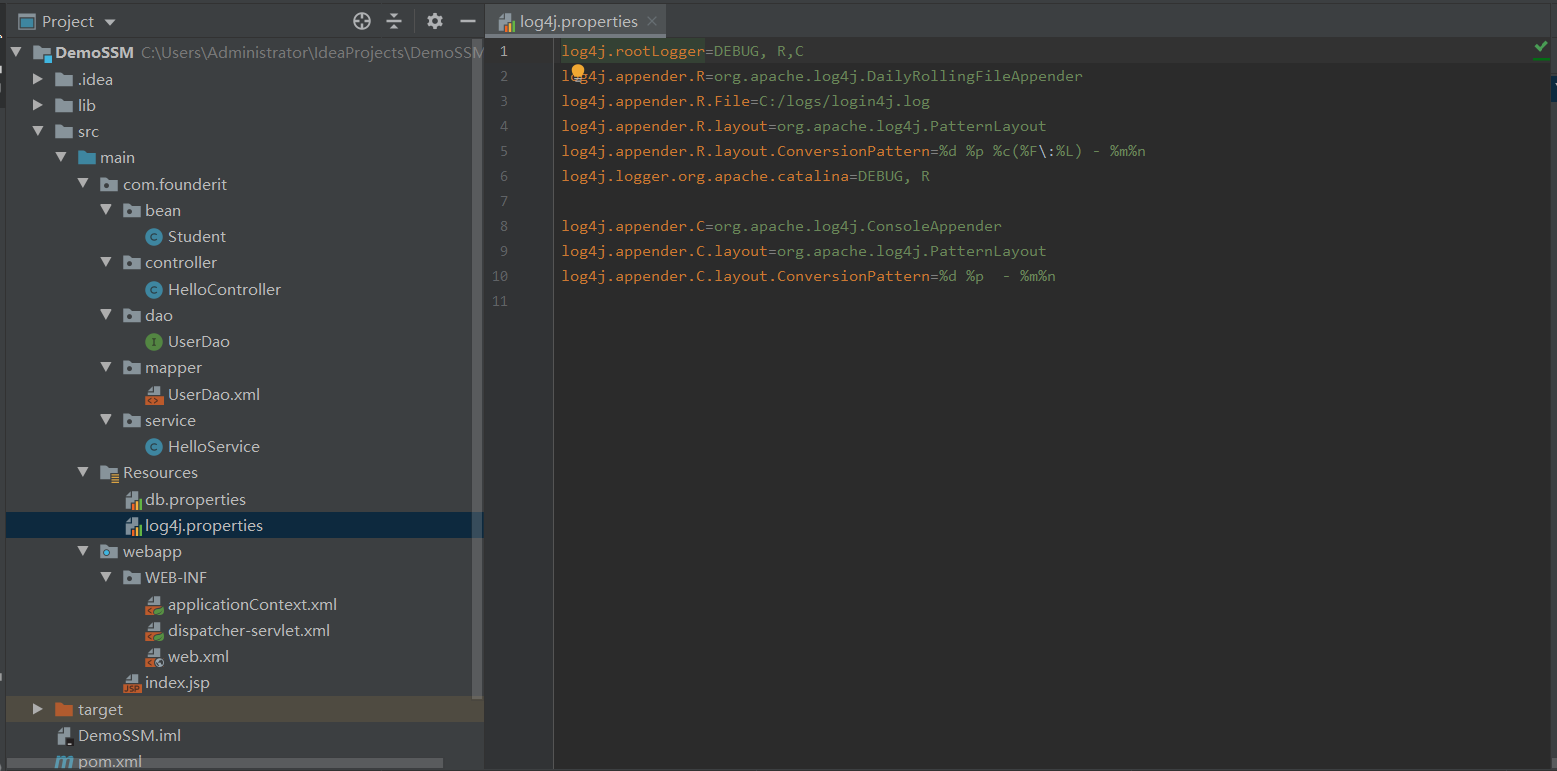 <!--日志--><dependency> <groupId>log4j</groupId> <artifactId>log4j</artifactId> <version>1.2.17</version></dependency><!--数据源--><!-- https://mvnrepository.com/artifact/org.apache.commons/commons-dbcp2 --><dependency> <groupId>org.apache.commons</groupId> <artifactId>commons-dbcp2</artifactId> <version>2.1.1</version></dependency><!-- https://mvnrepository.com/artifact/org.mybatis/mybatis-spring --><dependency> <groupId>org.mybatis</groupId> <artifactId>mybatis-spring</artifactId> <version>1.3.2</version></dependency><!-- https://mvnrepository.com/artifact/org.mybatis/mybatis --><dependency> <groupId>org.mybatis</groupId> <artifactId>mybatis</artifactId> <version>3.4.6</version></dependency><dependency> <groupId>org.aspectj</groupId> <artifactId>aspectjweaver</artifactId> <version>1.8.4</version></dependency>