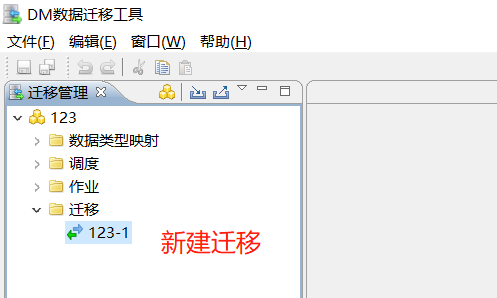 1、新建迁移,本例选择DM到SQL,即导出文件。