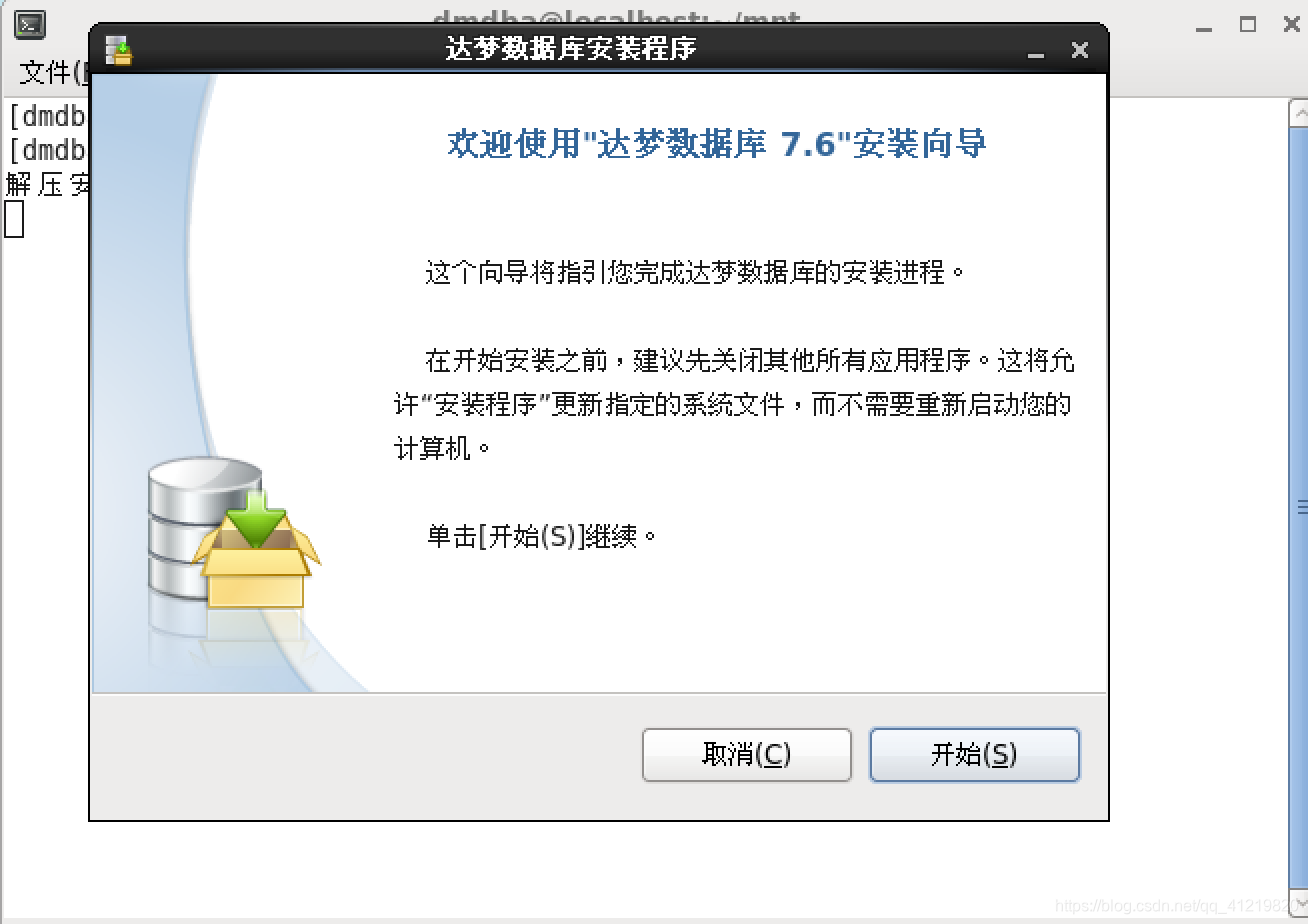 - 切换到用户dmdba,运行/home/dmdba/mnt目录下的DMInstall.bin文件