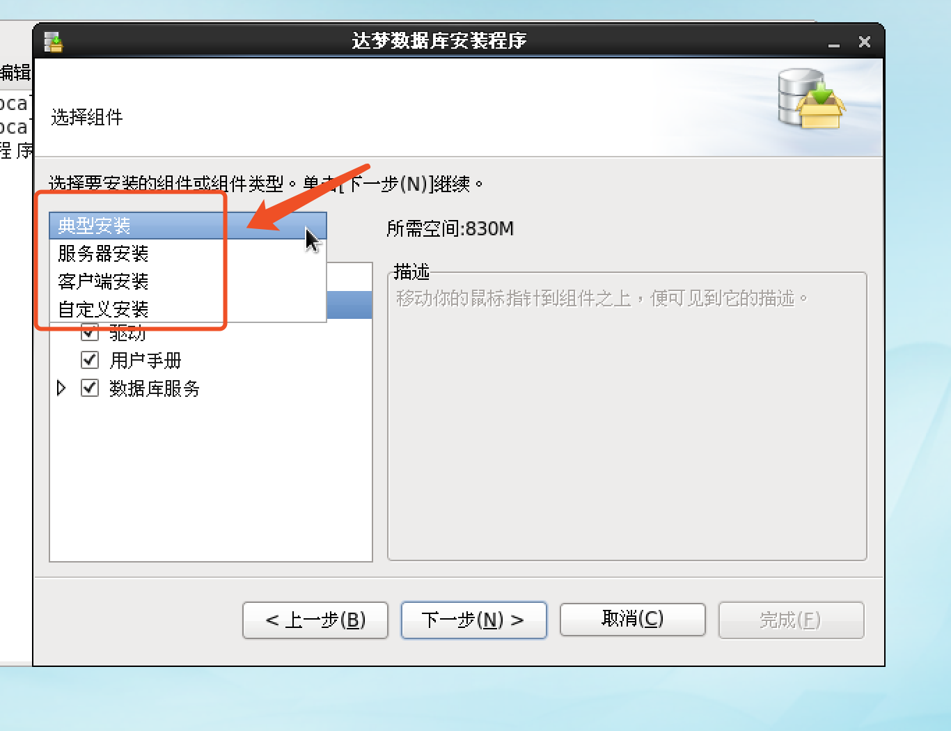 不同的安装方式对应安装不同的组件,根据企业的需求来进行安装。本文选择典型安装方式