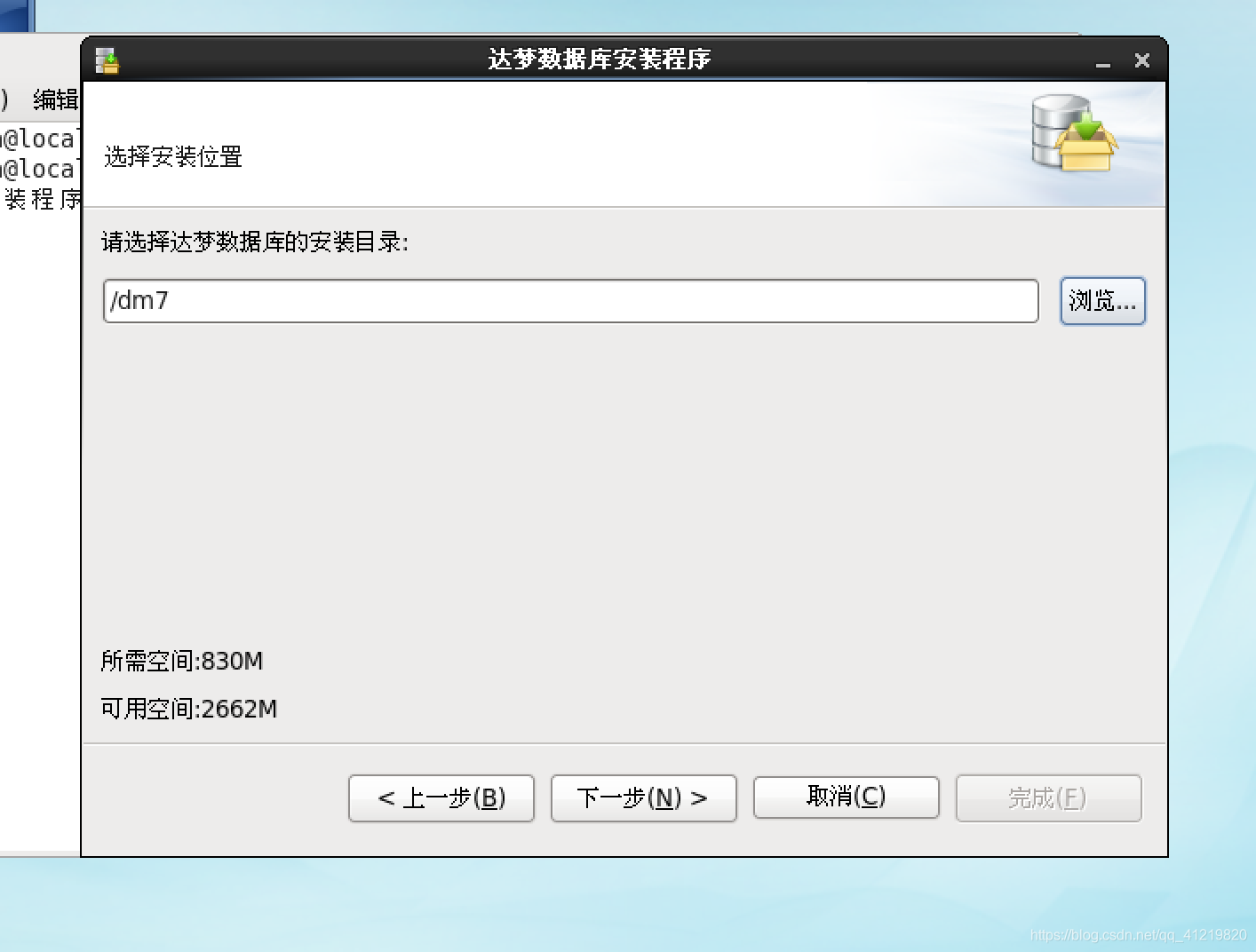 安装路径选择之前创建好的/dm7目录下,点击下一步