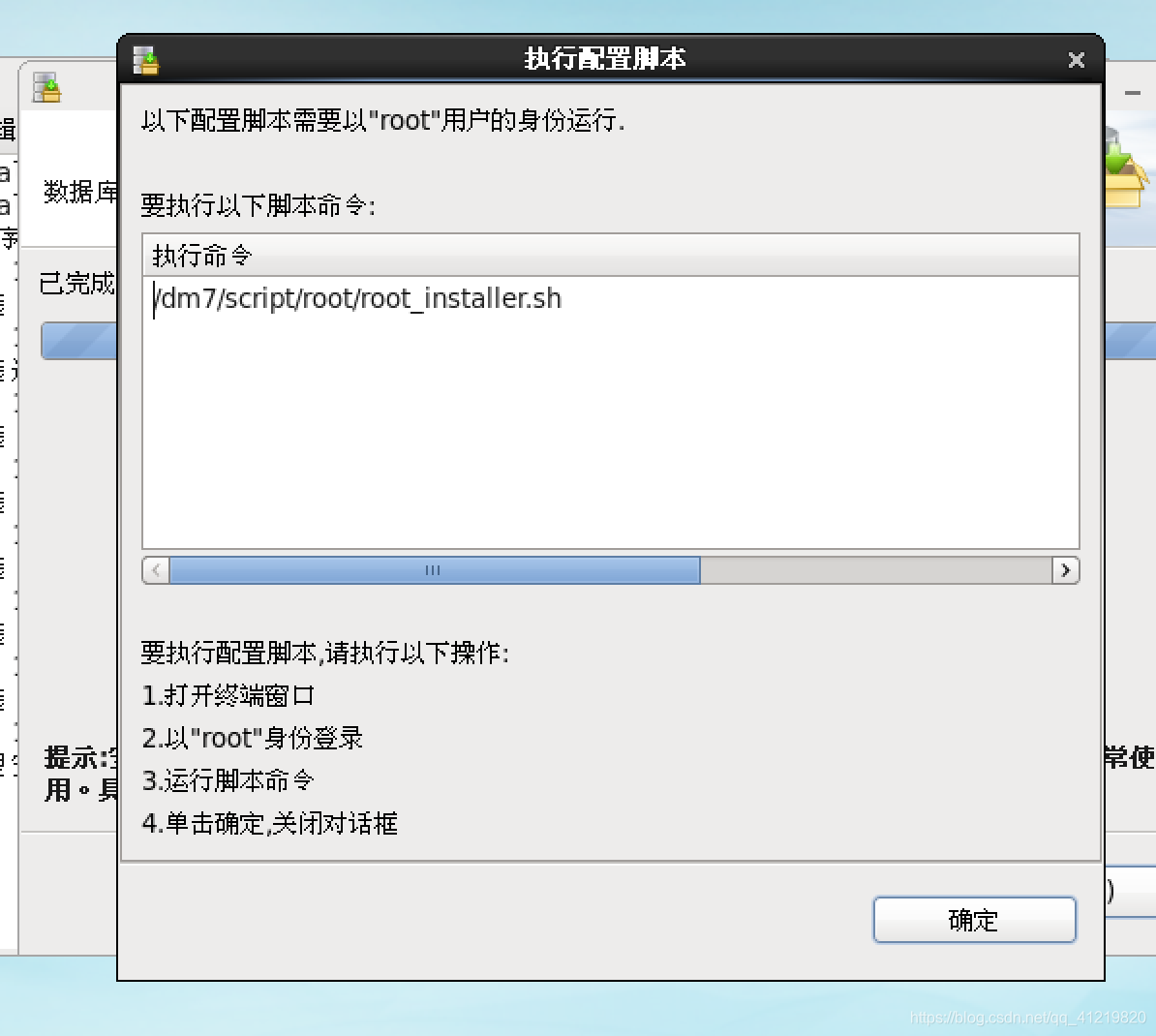 等待数据库的安装,会弹出一个执行配置脚本,根据提示,在root用户权限下运行