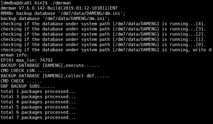 第二步. 在dm7/bin目录下输入 ./dmrman