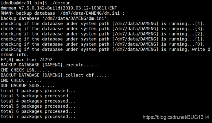 备份成功后可以到/dm7/data/DAMENG/bak/DB_DAMENG_FULL_2019xxxx目录下查看备份文件