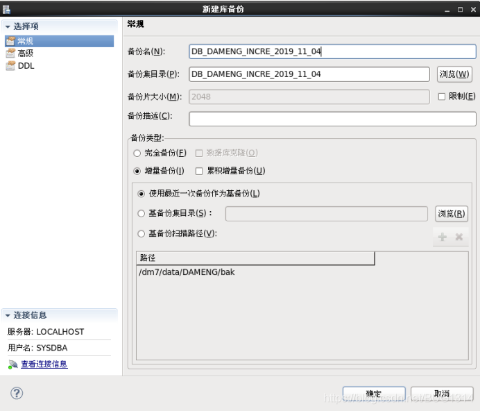 左侧节点,找到备份--》库备份--》新建备份,选择全备或增量备份