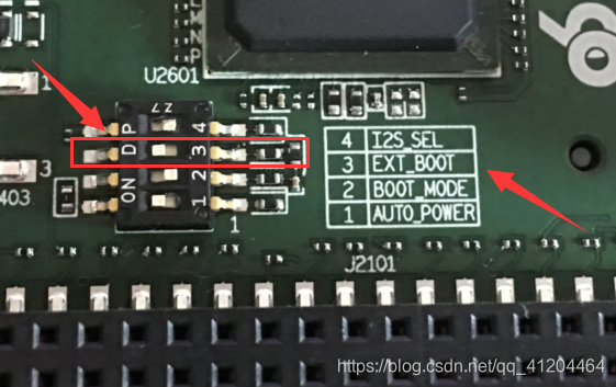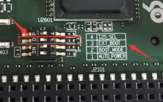 hikey970上的拨码开关 3号(EXT Boot)拨到 on 上(总体是 1,2,3,4 : on off on off)