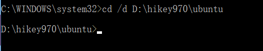 1)命令行输入: cd /d D:\hikey970\ubuntu