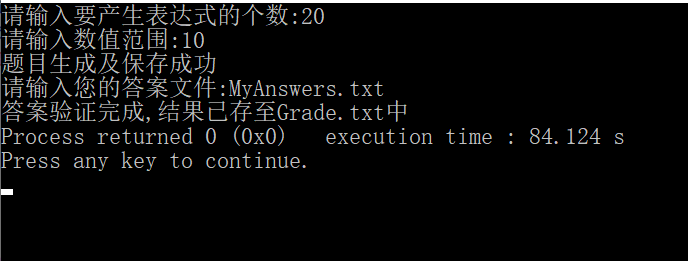 printf("答案验证完成,结果已存至Grade.txt中");