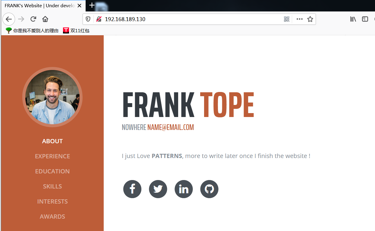 项目目标:靶机渗透 1.获取目标的IP地址,nmap扫描: nmap -sP 网关/24 2.扫描目标系统 3.看到80端口先去浏览试试,感觉没什么可利用的,先放一边 4.查看了8011端口的感觉也没什么东西可以利用,重新去80端口,扫描爆破一下目录。 5.找到development的页面,需要登录才行。 来源:https://www.cnblogs.com/PrideAssassin/p/11725871.html 标签 nmap 80端口