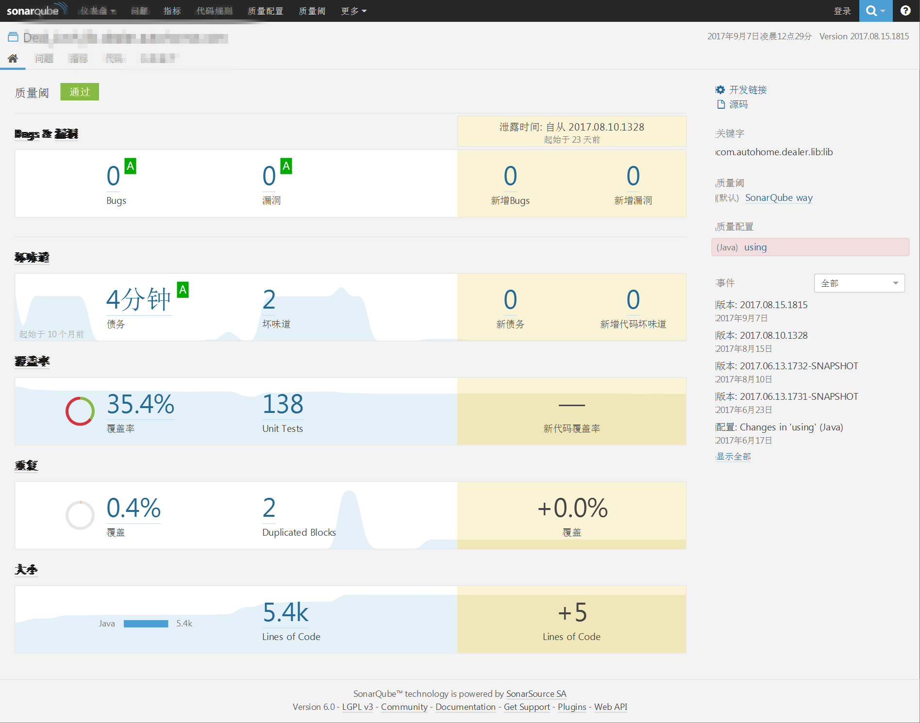 我们对sonar的需求是:希望sonar能给我提供一个粗略的项目代码质量报表,含违反规则数量、单测数量、单测覆盖度及代码重复度等。