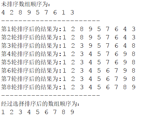 选择排序是每一次从待排序的数据元素中选出最小的一个元素,存放在序列的起始位置,直到全部待排序的数据元素排完。