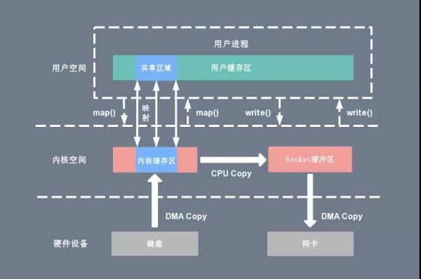 实现零拷贝用到的最主要技术是 DMA 数据传输技术和内存区域映射技术: