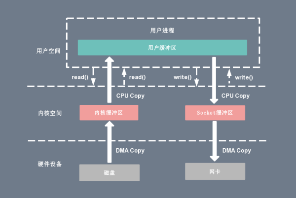 - CPU 收到 I/O 中断以后将磁盘缓冲区中的数据拷贝到内核缓冲区,然后再从内核缓冲区拷贝到用户缓冲区。