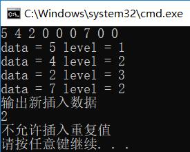 27 printf("不允许插入重复值\n");